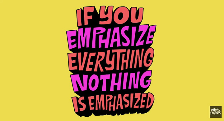 My day job gets me access to Adobe, and I found Chris Piascek’s channel while searching YouTube for how-tos and inspiration. His work is vibrant, and his videos are helpful. These are from a recent list of pieces of advice for improving your hand-lettering skills, but it’s good for any creative work or just life.